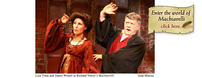 Set in Florence in the early 1500's, Machiavelli is a witty comedy with bite about the great political thinker and his equally clever wife, Marietta. Within a constantly changing world of intrigue, they must use their wits to navigate the outrageous whims and violent behavior of the Medicis, as well as their own daughter's shocking rebellion. Should Machiavelli help his sworn enemy, the Medici family, in order to help his own family survive to fight another day...or confront them and put all their lives in jeopardy? When the trials and tribulations of the Renaissance rule the day, it isn't always enough to be Machiavellian. Even for Machiavelli. Most famous for his extraordinary political treatise, The Prince, Niccolo Machiavelli is a playwright's dream. And Machiavelli by Richard Vetere, is an audience's delight. Don't miss what critics have called "snappy, surprising, stimulating, and all together satisfying". |
