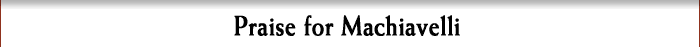 “A romp...whimsical...The new play, by Richard Vetere, is simply called ‘Machiavelli’; and a good cast delivers on the humor. A firebrand of Florence, in fact, Machiavelli was just the prototype of modern power politics. He sought to serve the republic of Florence by any means possible... no more nefarious than any competent lobbyist, spin doctor or politician working in Washington today.”